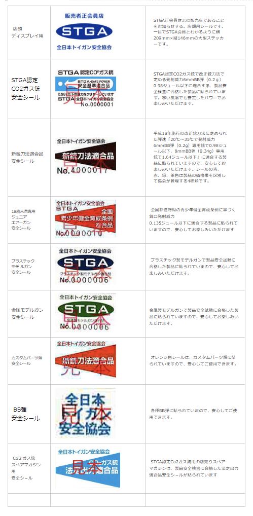 規制をクリアしている証明となるマークです。全日本トイガン安全協会のHPで記載があります。→こちら