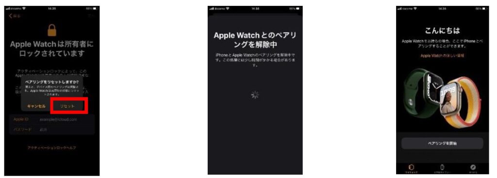 4.この後、指示に従ってApple Watchが設定出来た場合、初期化、アクティベーションロックが解除されており、買取可能