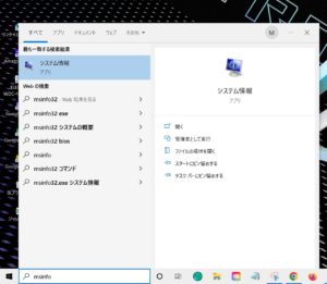 左下の検索窓へ「msinfo」とし、ENTERキーを押す
