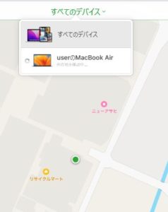 Macを探すONの状態の表示(探すをOFFにすると1~2分程度で消えた)