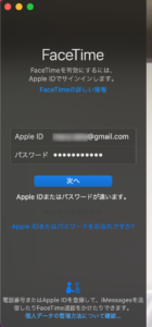 FaceTimeを起動し、表示されているAppleIDが店用になっていることを確認