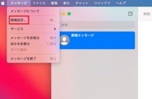 iMessageを起動し、ファイルメニューから環境設定を開く