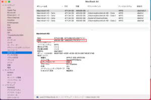 左側のストレージをクリックして赤枠部分がストレージ容量と種類です。